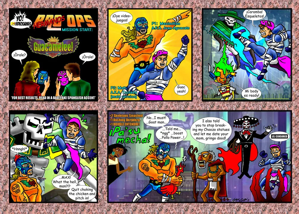 Ключевую роль в вашей заинтересованности этой игрой жанра «скроллинга beat-em-up» из сотен других в этом жанре играет ее стиль. К счастью, этого Guacamelee имеет в избытке. Лучше не обращать внимания на нелепый сюжет, который включает в себя героя Лучадора (мексиканского профессионального борца), пытающего спасти свой город и мир от какого-то смутного зла. Скорее, надо просто наслаждаться саундтреком с игрой на испанской гитаре, прекрасно анимированными персонажами с ярким дизайном, и тонким вкусом латинос, который наполняет все, от артов фонов до прекрасных диалогов.