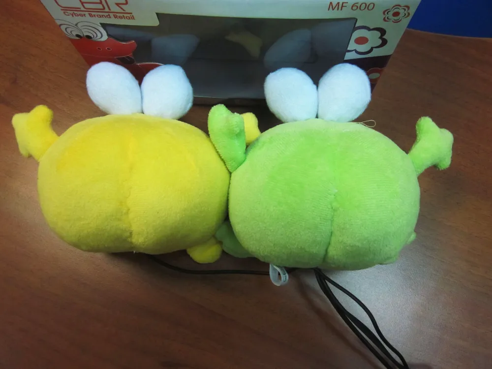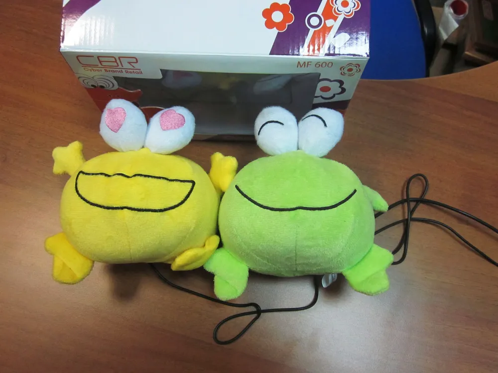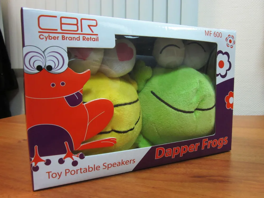Когда мне принесли коробочку с двумя разноцветными лягушатами, трудно было представить, что в их плюшевых недрах скрывается по стереодинамику. Тем не менее, торчащие позади игрушек провода говорили совершенно о другом. Два веселых лягушонка – это портативные стереоколонки MF 600 Dapper Frogs от Cyber Brand Retail, выдающие весьма неплохое звучание.