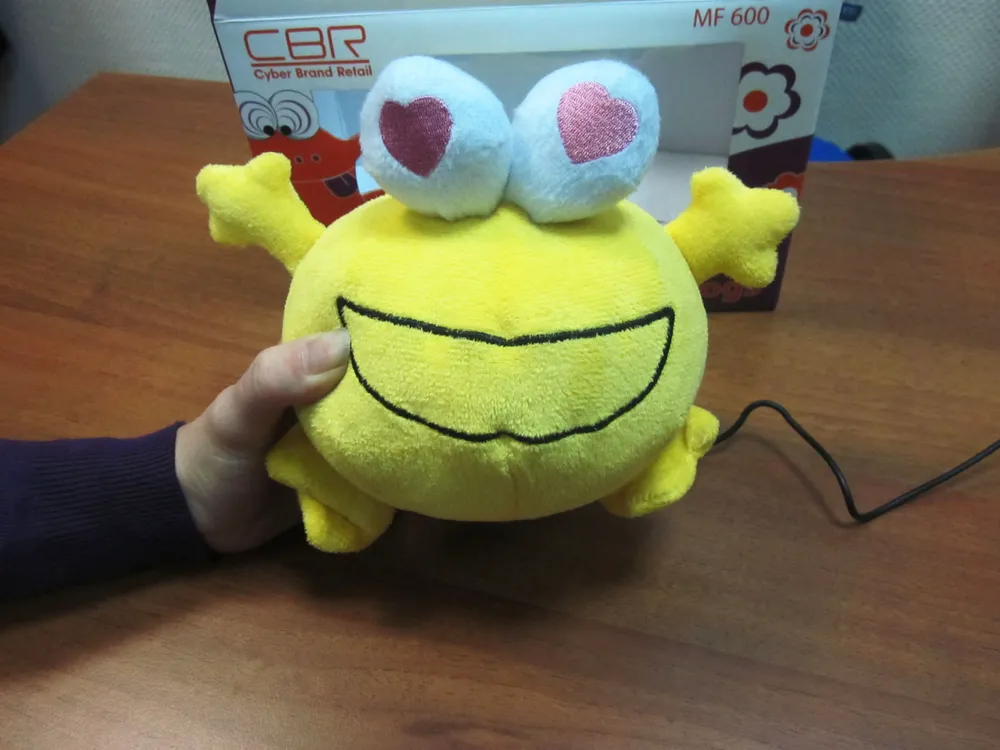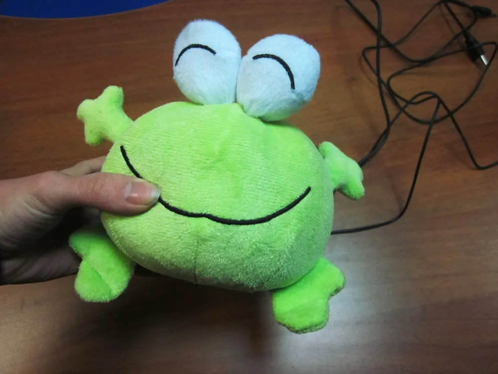 Зеленая лягушка, назовем ее условно Тэд, обладает весьма довольной рожицей и прикрытыми от восторга глазами. Причина таких эмоций – желтая лягушка (условно Милли), с легкой безумной улыбкой и сердечками в глазах. Они явно испытывают друг к другу теплые и нежные чувства, и вокруг вашего “рабочего” места автоматически появляется аура любви и обожания. Лягушек можно комбинировать как угодно, благо длина проводов позволяет.
