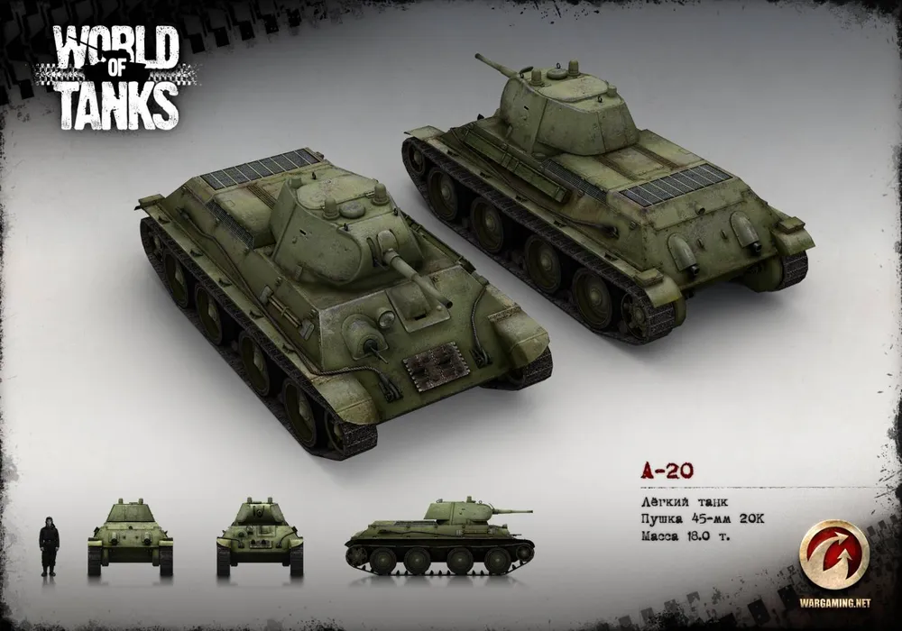 Вообще, А-20 – это такая очень неприятная заноза в пятой точке для всей команды противника. И не потому, что носится со скорость в 72 километра в час, нет. Бог с ней, со скоростью. Вот то, что она очень, очень быстро портит САУ начального уровня и сильно надоедает САУ высшего уровня – вот это уже гораздо неприятней. И, кстати, да. Из лёгких танков попадания снаряда А-20 в зад не выдержит броня ни одного. Из ПТ-САУ – А-20 не пробьёт только «Фердинанд». В зад, конечно же.
