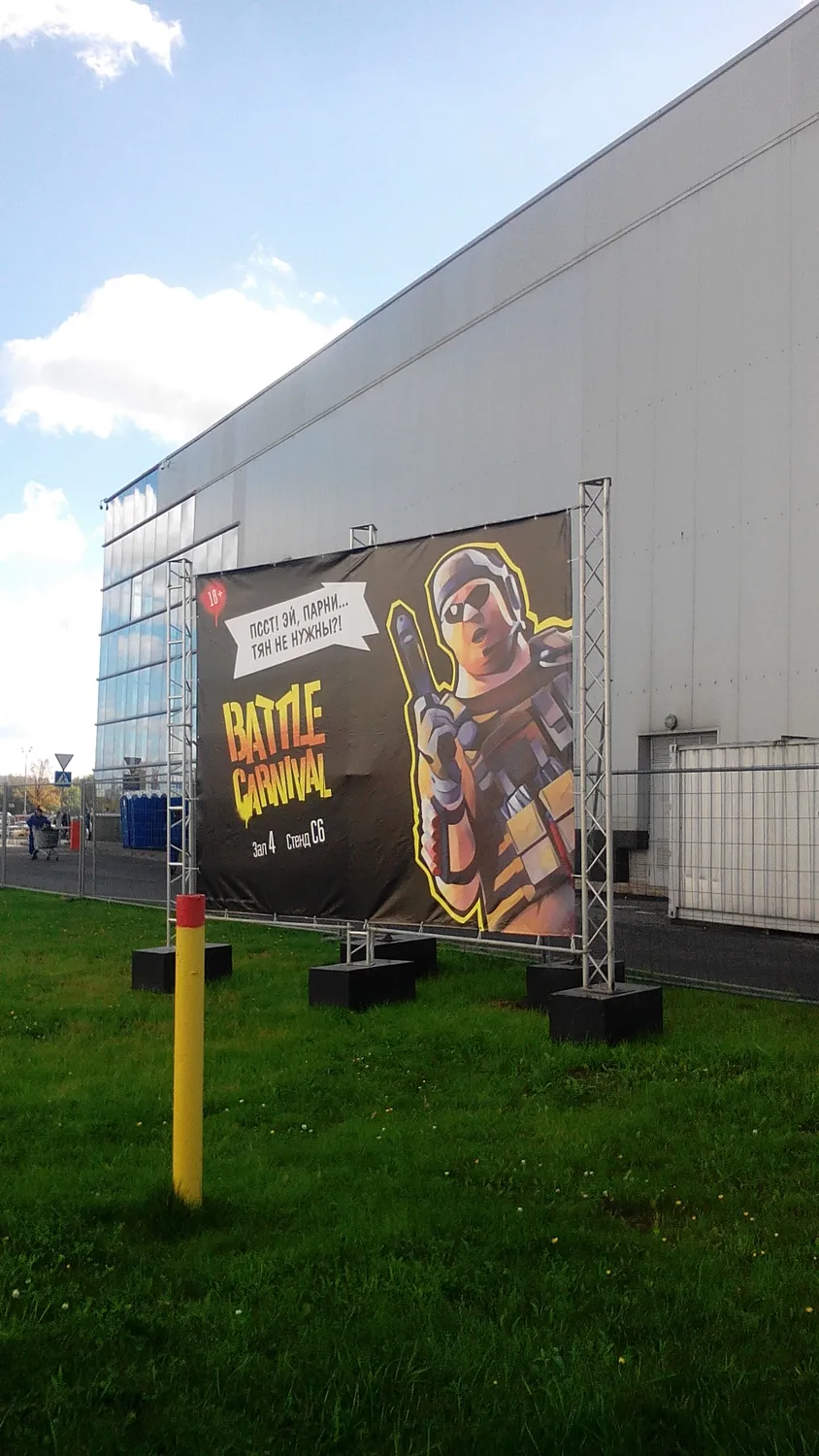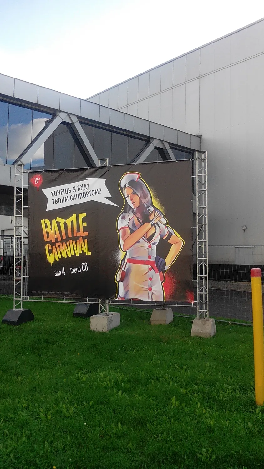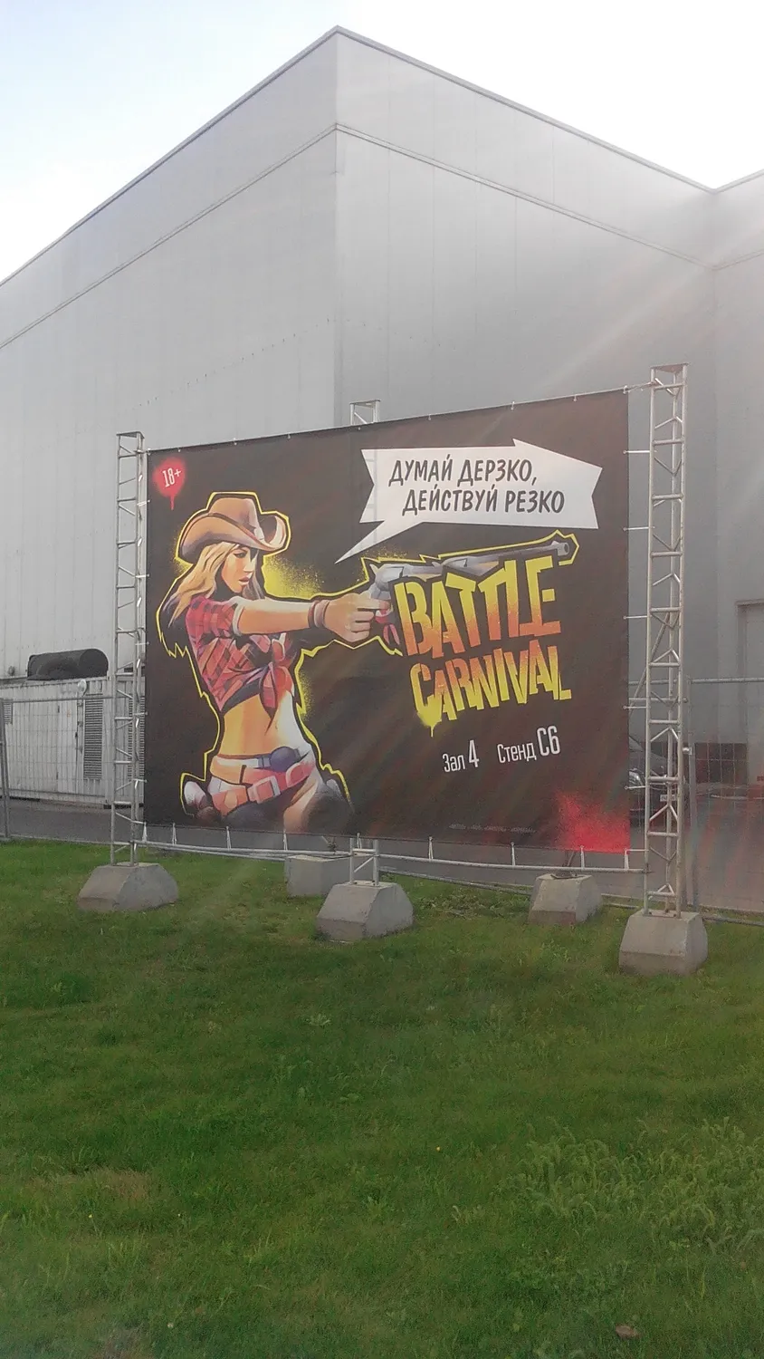 На деле все было куда как разнообразней и глубокомысленней. Уже по приближению к достославному Крокус-Экспо на метро Мякинино (ага, знали, что на выставке будут нэко?)... так вот, собственно по приближению стали видны крупногабаритные писульки в форме плакатов Battle Carnival - ага, этот задорный шутер-CS-убийца сурьёзно подошел к рекламе. Сайт, группа ВК, активные конкурсы, раздача промо-кодов для доступа к альфе - этим все не закончилось. Впереди могучий стенд с шальным ведущим, голым по пояс, с трусами, выглядывающими из штан, и безумными сигнами, ставящимися на руки желающих. И это лишь только начало...