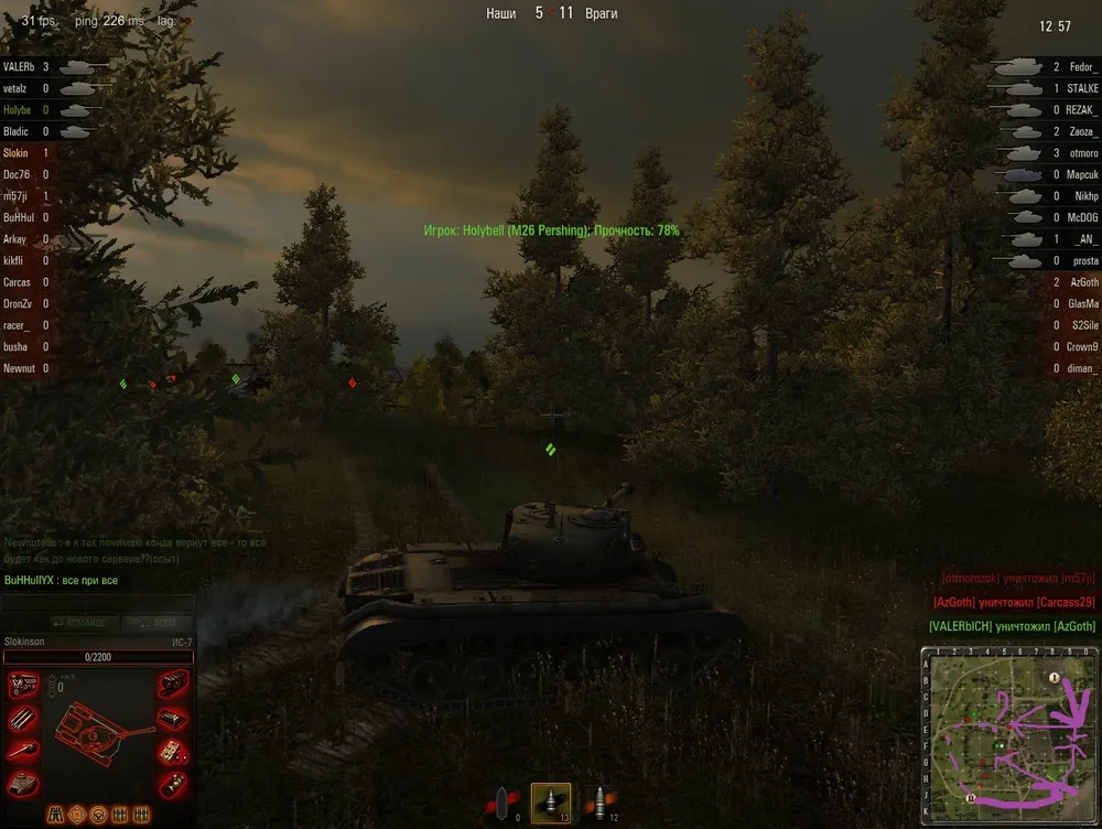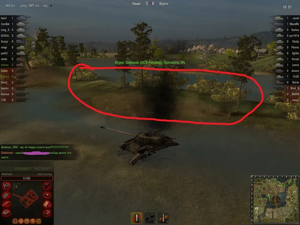 С этим моментом всё более или менее просто. Если видите, что вы требуетесь на другом фронте – обязательно укатывайтесь туда. М26 штука довольно мобильная и позволяет сменять фронты работы без проблем. В общем, тут только два основных совета: следите за миникартой и не давайте себя демаскировать.