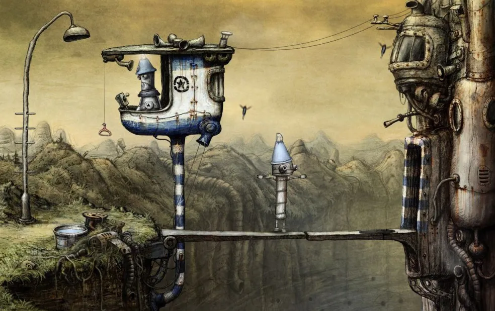 Нашего робота, как мы его починим на свалке, первой нашей локации, оказывается, можно растягивать и сжимать, чтобы роботу было удобнее дотянуться до разных вещей. Порой это нужно проделывать быстро, чтобы все успеть. Управление простое, мышкой ходим, подбираем предметы, а так же трансформируем Йозефа. В мини-играх можно пользоваться как клавиатурой, так и мышкой.