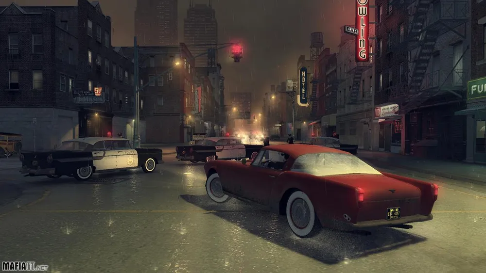 В Empire Bay уже вечер, так что движение на дорогах уменьшается, и уличные фонари только начинают загораться. Команда разработчиков умышленно сделала именно такую погоду не зависящее от времени суток потому, они хотят установить правильное настроение для каждой из поставленных сцен. Тот, кто играл в первую Мафию помнит насколько была важна именно дождливая ночь для атмосферы в миссии на ферме.