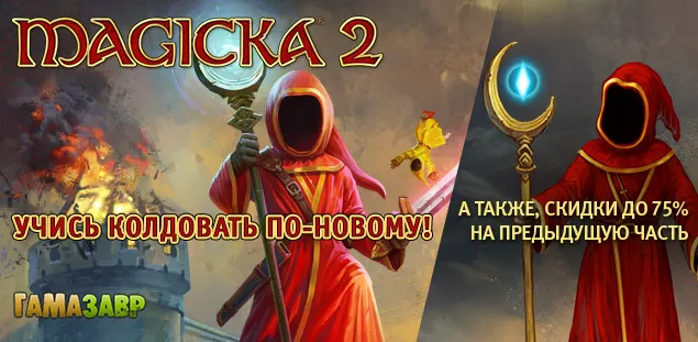 Мы с радостью сообщаем вам о старте предварительных заказов на игру Magicka 2, продолжение знаменитого кооперативного экшена, в котором четыре мага в цветных мантиях экспериментируют с разнообразными заклятиями и сражаются со злом.