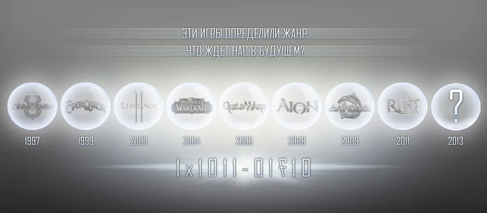 Компания Mail.Ru Games запустила таинственный тизер-сайт (линк), который обещает нечто грандиозное в следующем году. Никакой конкретики на этой странице не опубликовано, так что остается только строить догадки. Во-первых, на странице перечислены многие известные MMO-игры, внесшие значительный вклад в жанр — от Ultima Online и до World of Warcraft. Во-вторых, загадочные цифры, которые появляются при наведении курсора на «пузырь» с цифрой 2013.