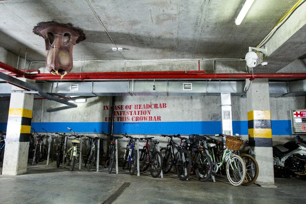 На паркинге есть лого Black Mesa и специальный ломик для самозащиты впечатлительных посетителей. Пусть у барнакла и нет языка, но привычка – страшная сила. После велосипедной прогулки каждый желающий может получить бутылку минеральной воды в интерактивном медбоксе.