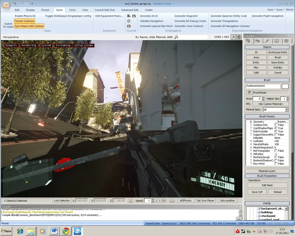 Но что-то я отвлекся. Как я уже говорил, Crysis 2 вместе с игрой предоставляет и третье поколение своих редакторов. Почему я его обособил в третье поколение? Во-первых, это интерфейс, который направлен не только на разработчиков, но и на обычных игроков. А во-вторых, консольность проекта привнесла и свои плюсы. Как я уже говорил, игра представляет собой сплошной квадродром. Что есть ни что иное, как те самые родные блоки. Вот только с такой полезной "деградацией" пришел и новый сопутствующий игровой контент в виде моделек и текстурок. Добавьте к этому "расставление предметов" в реальном времени, и возможность пройтись по карте прямо в редакторе. В купе со значительно уменьшенным масштабом это сильно облегчает задачу пользователю.