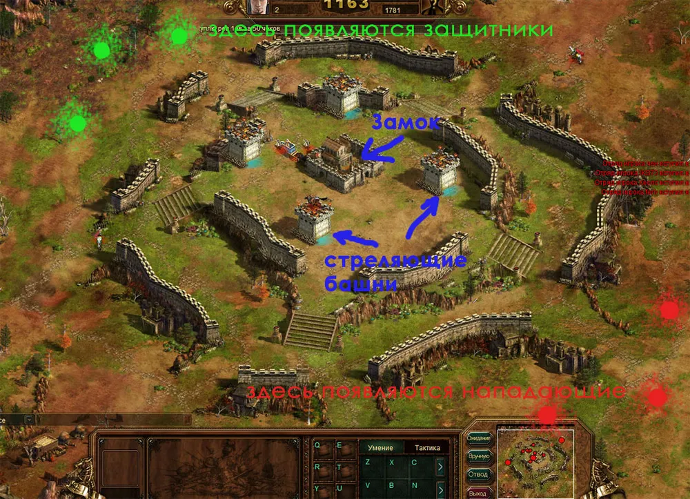 Берётся ка можно больше войск и посылается бегом на замок, игнорируя расстрел в упор и пинки и филе. Защитники получают много ПвП, атакующие ломают Замок и получают Цитадель. Главное в этой тактике: добежать пока не перекрыли проходы и иметь достаточное кол-во войск.