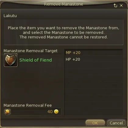 Для того чтобы добавить ManaStone необходимо чтобы в вещи, в которую вы желаете улучшить, был свободен хотя бы один слот для камней.