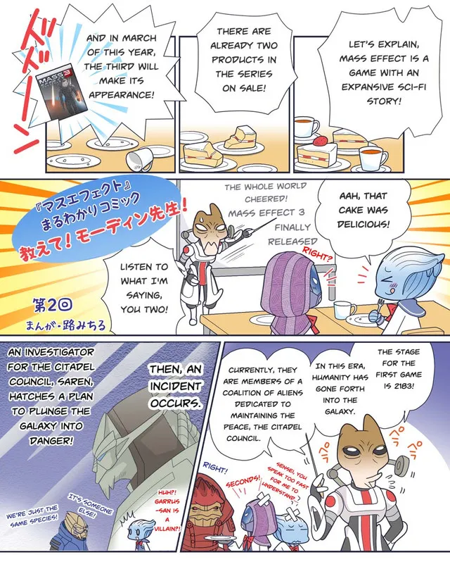 До релиза Mass Effect 3 остаётся всего десять дней, и все фанаты с нетерпением ждут этого дня. А что если вы решили начать знакомство с серией именно с третьей части? Сюжет в Mass Effect, всё-таки, не такой громоздкий как в любой другой космической опере, но вам всё равно понадобится какой-то фундамент для ознакомления с вселенной. Можете попробовать пройти первые две части, а можете почитать мангу "Научите меня, профессор Мордин!"