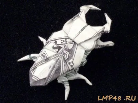 Мастер оригами Вон Парк (Won Park) использует одно- и двухдолларовые купюры как материал для творчества: сворачивает из них фигурки людей, животных, птиц, насекомых и техники. И называет это занятие «манигами» (moneygami).