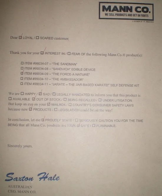 MANN CO - письмо из TF2