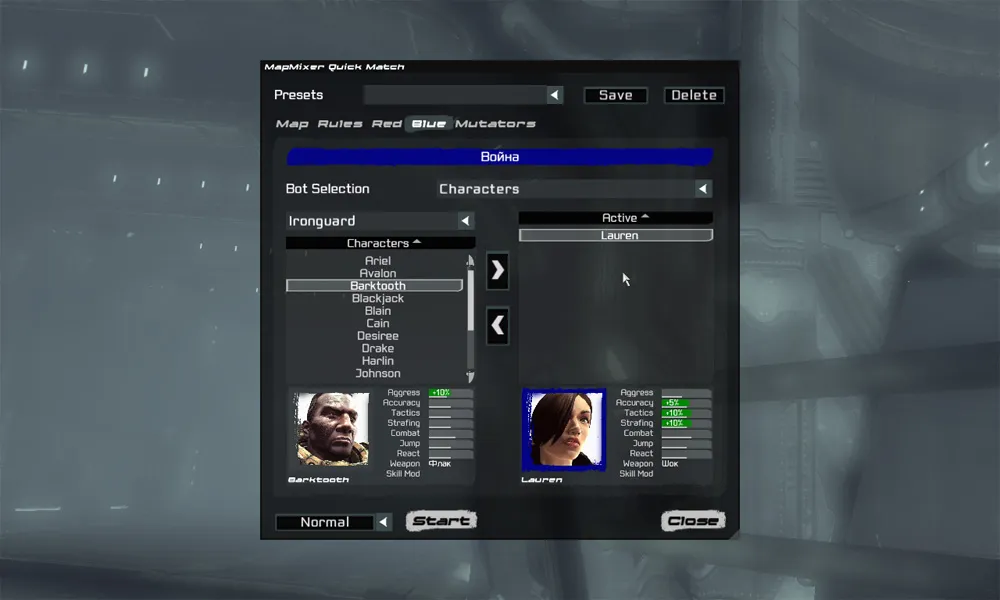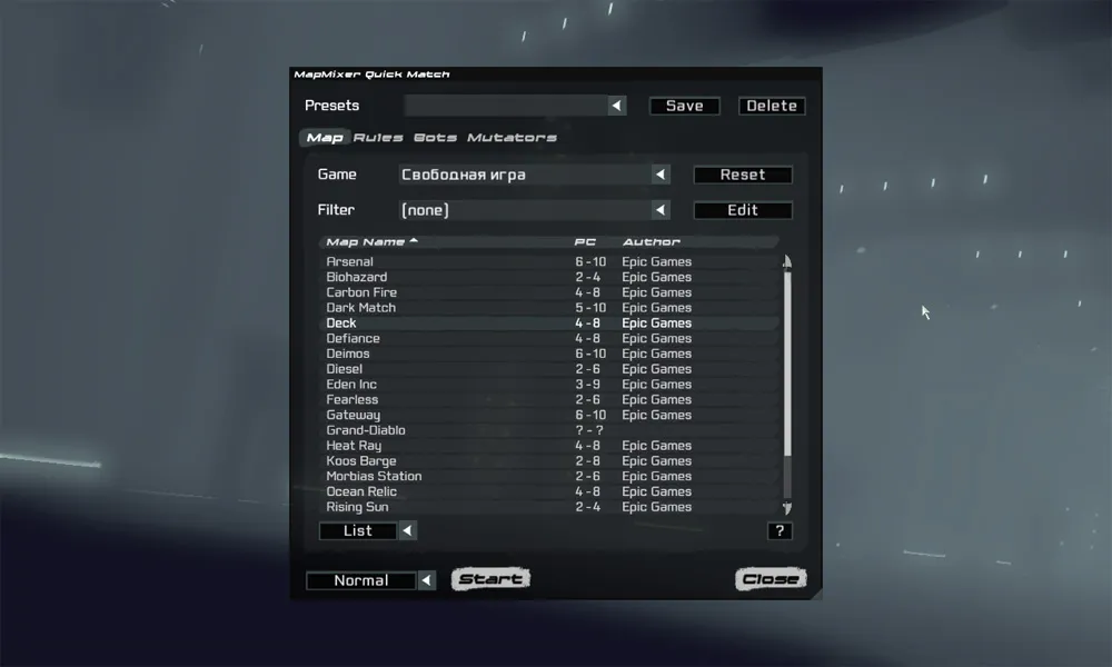 Быстрый режим запуска работает так же, как и в стандартном меню UTIII. Выбрали карту, ботов, мутаторы - запустили игру.