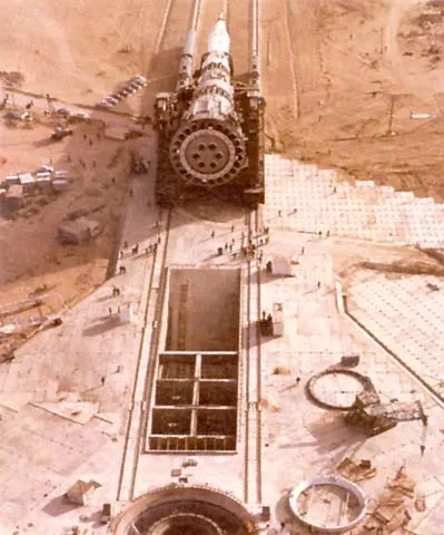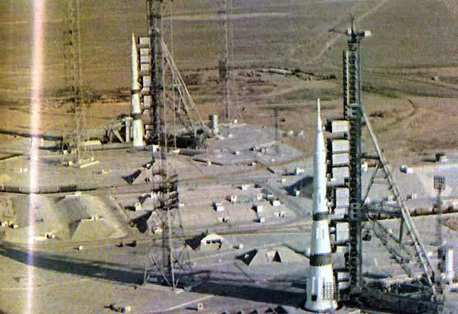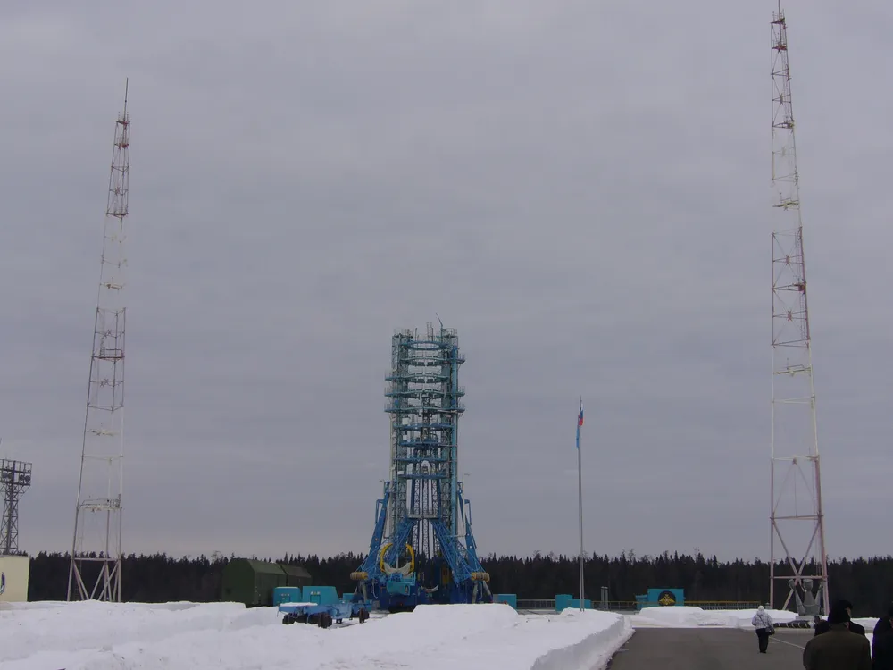 Старт, на котором произошла катастрофа. Справа внизу, у подножия молниеотвода - памятник погибшим.