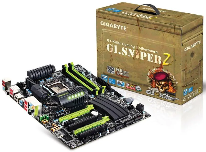 G1.Sniper 2, с помощью которой может получиться мощная игровая система, выполнена на чипсете Intel Z68 и поддерживает установку процессоров Core в исполнении LGA 1155 (Sandy Bridge и Ivy Bridge). Есть четыре слота для модулей оперативной памяти DDR3-2133, четыре порта Serial ATA 3.0 и три — Serial ATA II для накопителей. Благодаря двум разъёмам PCI Express 3.0 x16 возможны конфигурации видеоподсистемы SLI и CrossFireX.