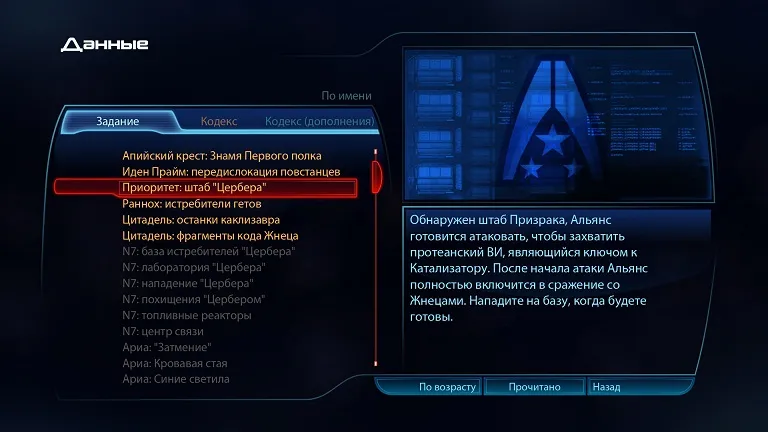 ME 2 была лаконична, а тут возникают вопросы. Интерфейс. Зачем вы его поменяли? Нет, понятно что новая игра. Но раньше он было удобен, красив и детализирован. А сейчас упрощенная тёмно-синяя гамма, где всё перемешано и где даже нельзя узнать подробности о задании. Изменения ради изменений? Или типа, оставить 3D-модели предыдущей части можно, а вот интерфейс - нельзя, это не солидно?