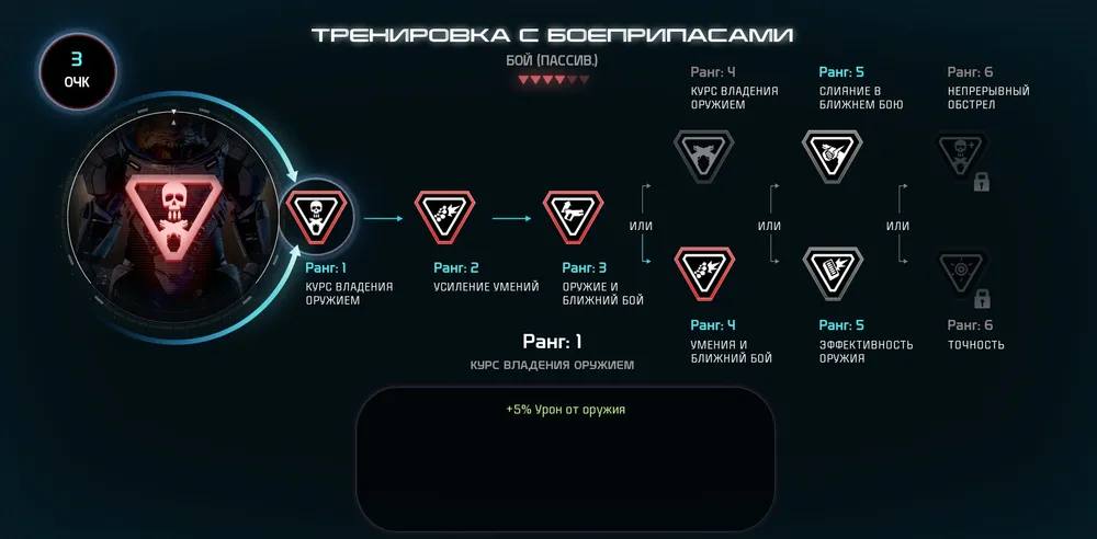 - 4 ранг - Умения и Ближний бой: урон умениями для Наемника гораздо полезнее урона оружием.