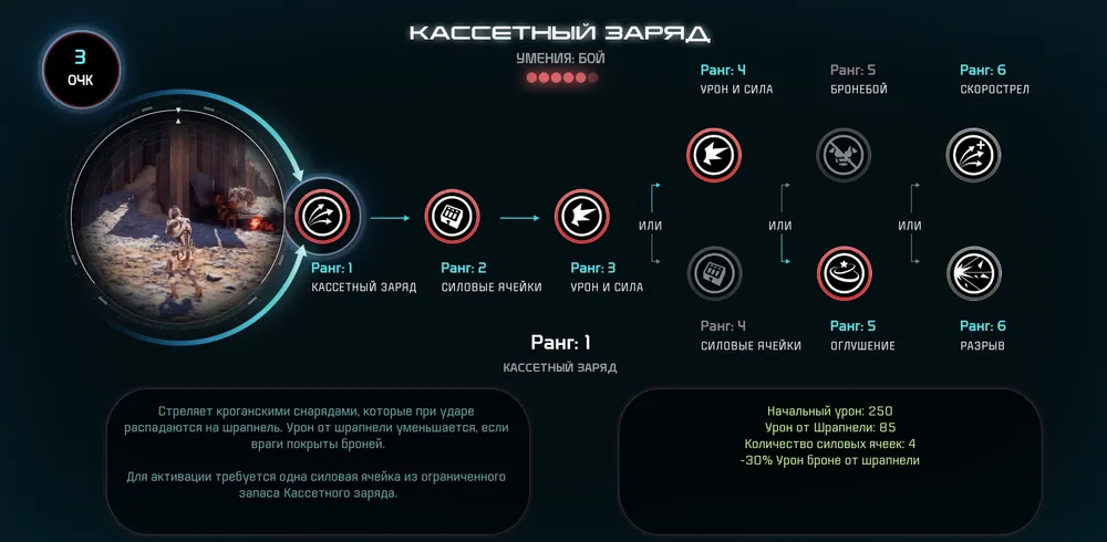 Про очередность прокачки: сначала полностью качаем Огнемет, затем Кассетный заряд до Оглушения, потом Тренировку и все остальное.