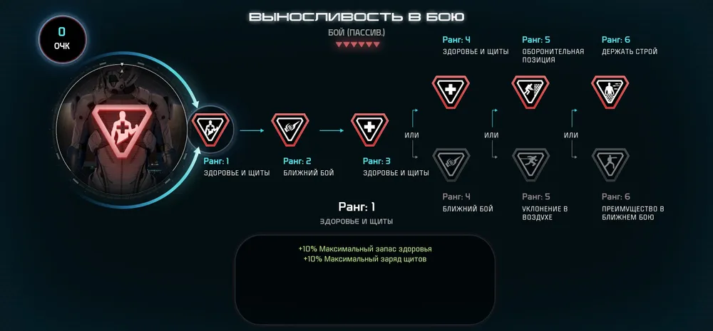 На 4 ранге берем Умения и ближний бой: одна лишняя силовая ячейка и +20% урона для Гранат пригодится больше, чем +8% урона оружия.