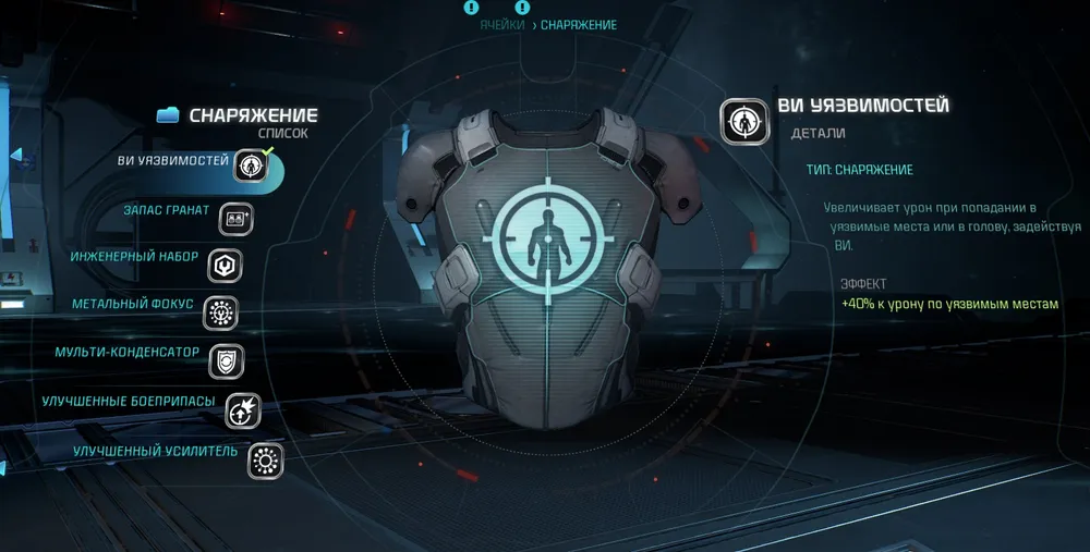 Выбор расходников для Лазутчика богат: вы можете брать и урон для различного оружия, и урон по уязвимости, и энергосбережения для перезарядки Маскировки (полезно на Платине). Боеприпасы не обязательны, только если хочется.