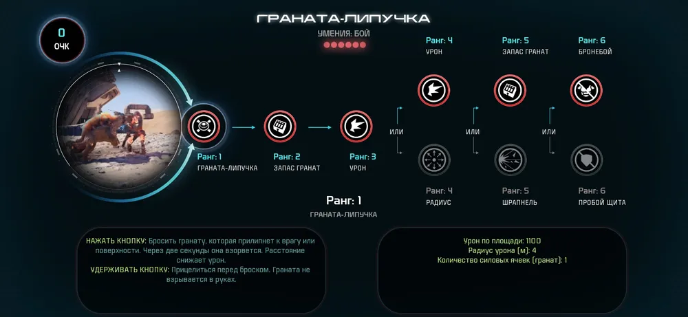 1. Граната-Липучка - очень полезный навык для нанесения урона по площади. Не взрывается в руке и не ранит владельца. Прилипает да ладно, вы гоните к врагам и стенам.