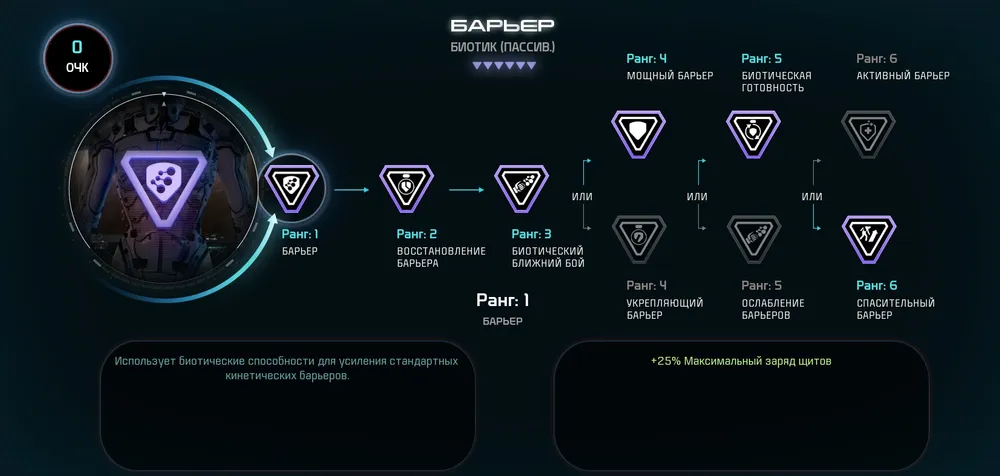 Если Бросок вам не по душе, прокачайте Копье 4В, 5В и 6А рангами. Также можете пожертвовать 6 рангом Боевой Биотики и вложить очки в непрокачанный Бросок или Копье.