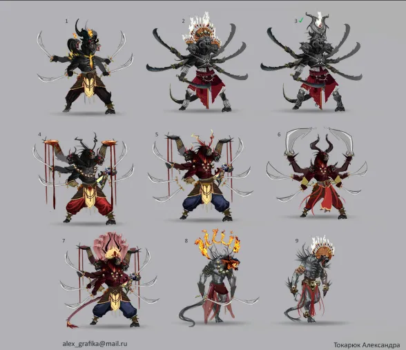 Во второй итерации автор искала варианты оружия для босса и элементы его внешнего вида.