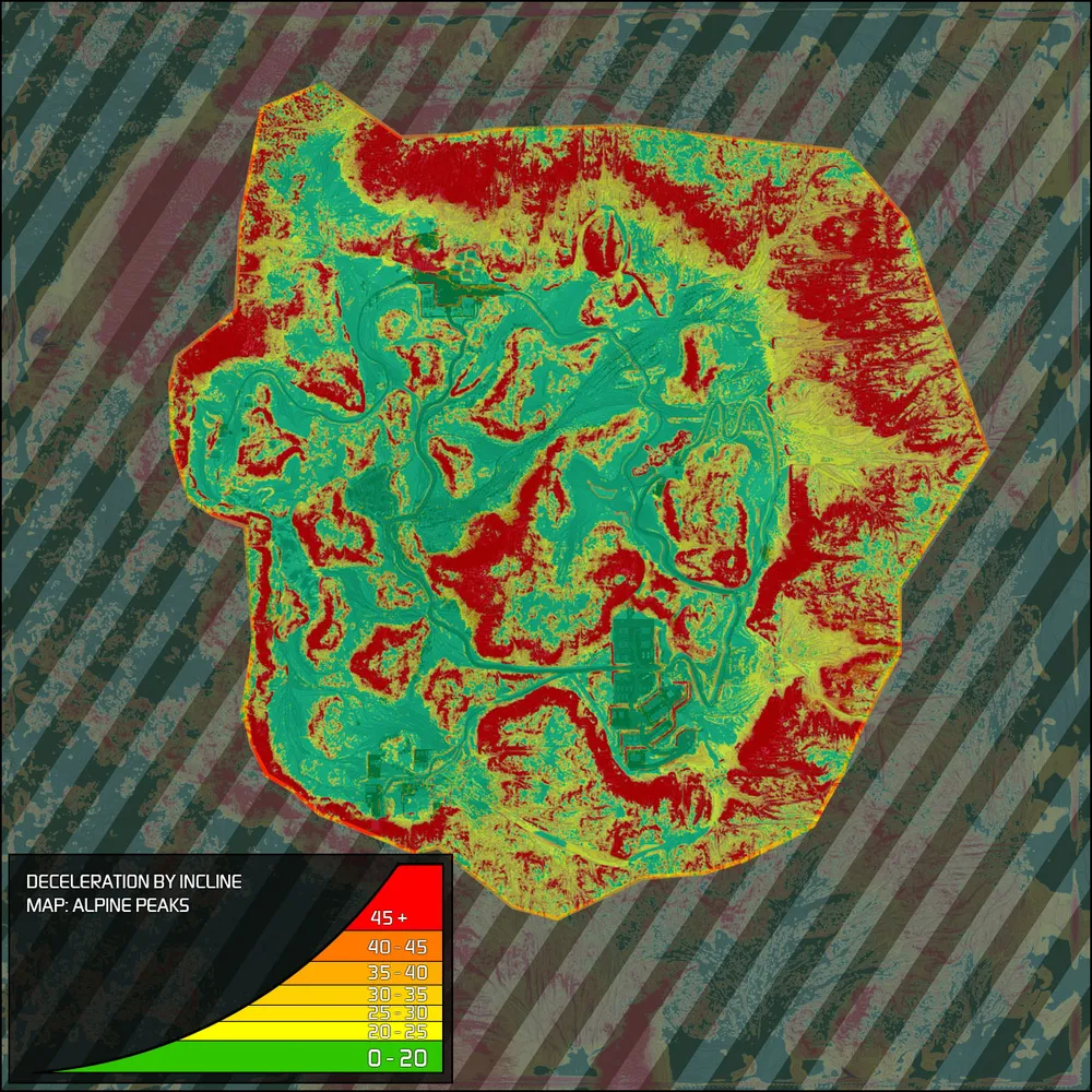 Разнообразные карты хороши не только разными климатическими параметрами, но и своей топологией, архитектурой. Alpine Peaks - большая карта, с идущими волнами холмами, при этом подъёмы в основном плавные. Карта дневная, так что идеальна для любителей стрелять на большие дистанции или по наводке пускать ракеты. В противоположность ей Canyon Network уже теплее, хотя тоже дневная. Представляет собой коридоры между резко вздымающимися плато, которые перекрывают обзор, а кроме того служат удобно площадкой для размещения засады. Так что разнообразия карт хватает, и они запоминаются, в них начинаешь вскорости запоминать удобные места для пряток или путей в тыл противника.