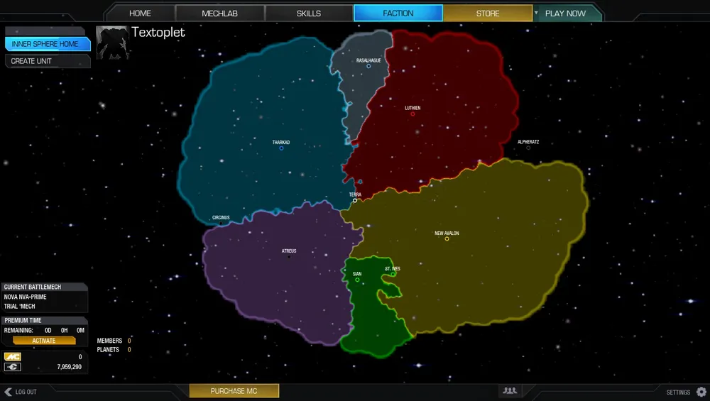 Условно реализована вселенная XXXI века, в которой существуют граничащие друг с другом галактические государства, образующие так называемую Внутреннюю Сферу. По легенде игры, игроки являются наёмниками, которые могут выбрать принадлежность (выразить приверженность) какой-то стороне, объявить себя одиночкой или причислить к Корпусу Наёмников (условно нейтральной стороне, сборищу одиночек, которым не очень хочется быть совсем уж одиночками).