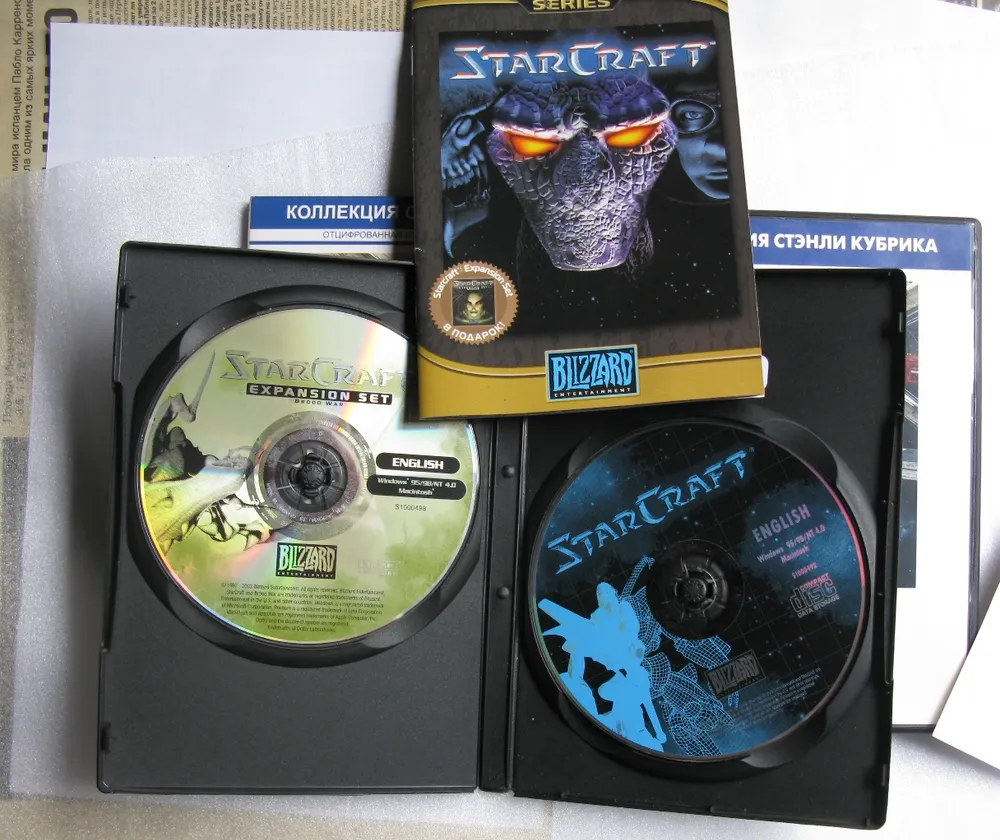 Это двухдисковая коробочка с Starcraft'ом, с первой игрой и дополнением Brood war. жаль что на английском, но все интересно.