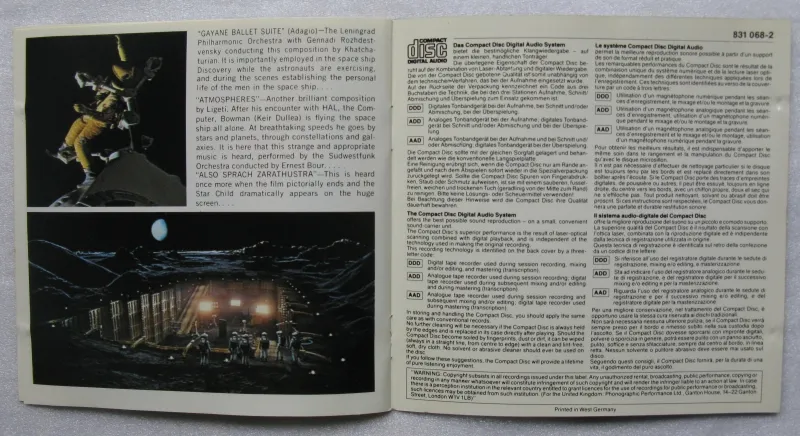 Это западное, скорее немецкое издание саундтрека к "Космической одиссеи 2001 года". Как видим, издание относительно простое. Бонусы… бонусом является сам диск и хорошая типография вкладыша.