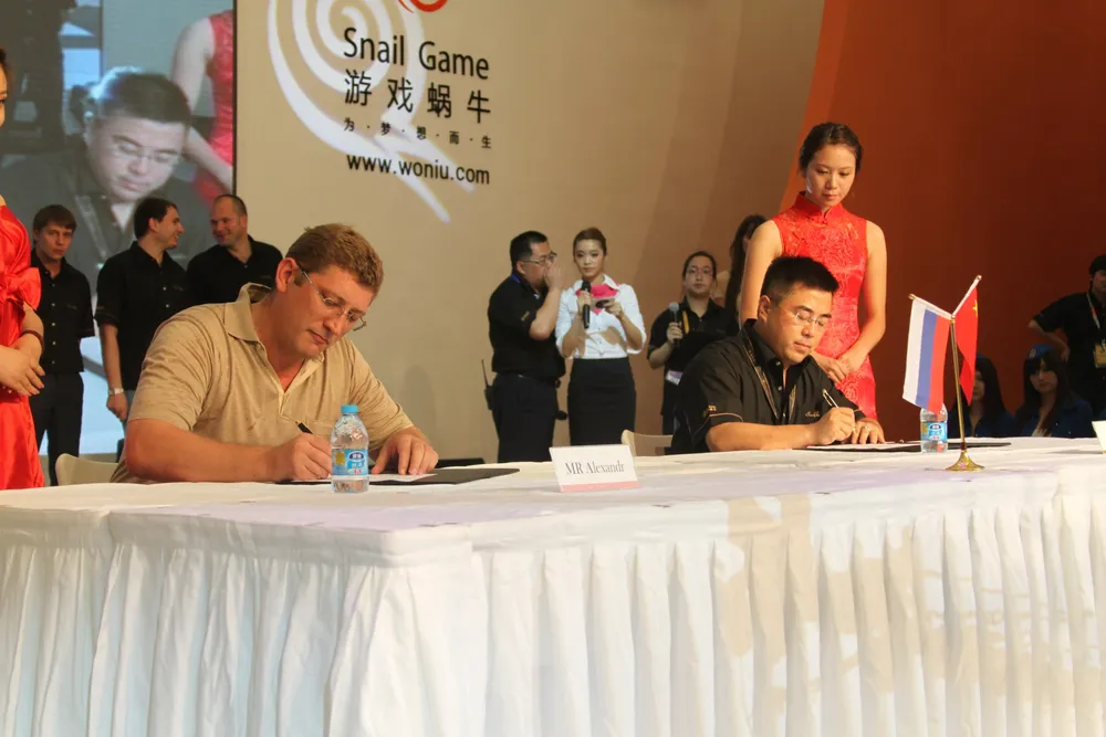 Приехали мы туда не просто так. В ходе официальной части конференции состоялось подписание меморандума компаниями Mental Games и Snail Game о совместной разработке еще 9 клиентских игр в течение трех лет! Обстановка была, конечно же, самая торжественная. А уж прессы набежало. Не каждый день контракты на 40$ млн. подписывают! ;)