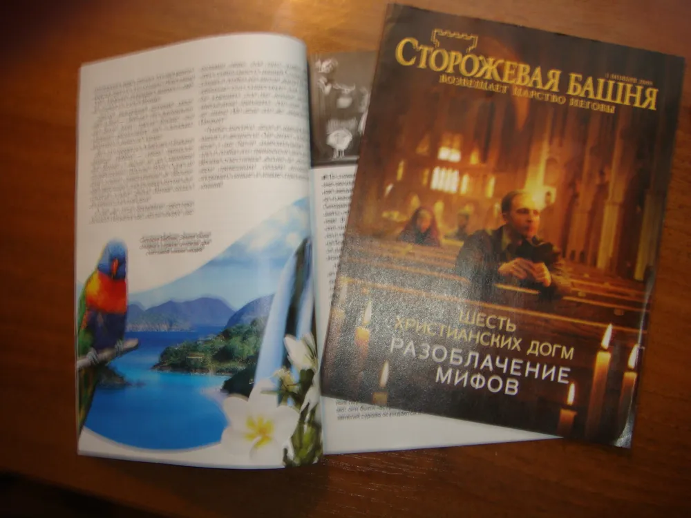 Значит открываю ее, и тут вижу вкладыш, который раньше не был виден. А там, мои любимые свидетели иеговы. Тонкий психологический ход,человек который взял первый журнал, откроет и прочтет и второй журнал.