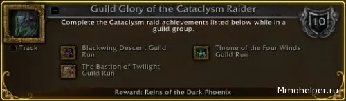 Также изменились критерии получения Темного феникса. Он больше не является гильдейским маунтом. Все что нужно для «птички» – пройти все 3 доступных рейда Катаклизма в составе гильдии.