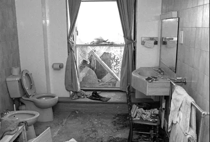 Ванная комната гостиничного номера, где остановилась премьер-министр Маргарет Тэтчер, после взрыва бомбы ирландских террористов.