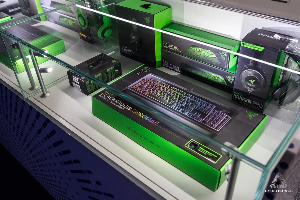 Помимо игровых зон, на территории комплекса есть еще бар с напитками и легкими закусками, а также собственный магазин Cybershop, где представлена продукция от компаний-партнеров. Если вкратце, то на его витринах вы найдете практически все те девайсы, которыми оборудованы игровые места в Cyberspace. Идея проста и гениальна одновременно – потестил-поиграл, понравилось, тут же приобрел и ушел домой с полюбившимся устройством. Ассортимент самый разный и на любой кошелек – от навороченных игровых ноутбуков и настольных систем до бюджетных, но классных в своем ценовом сегменте мышек и ковриков к ним. А для падких на брендированный мерч коллекционеров там найдутся и кое-какие приятные мелочи с символикой самого Cyberspace.