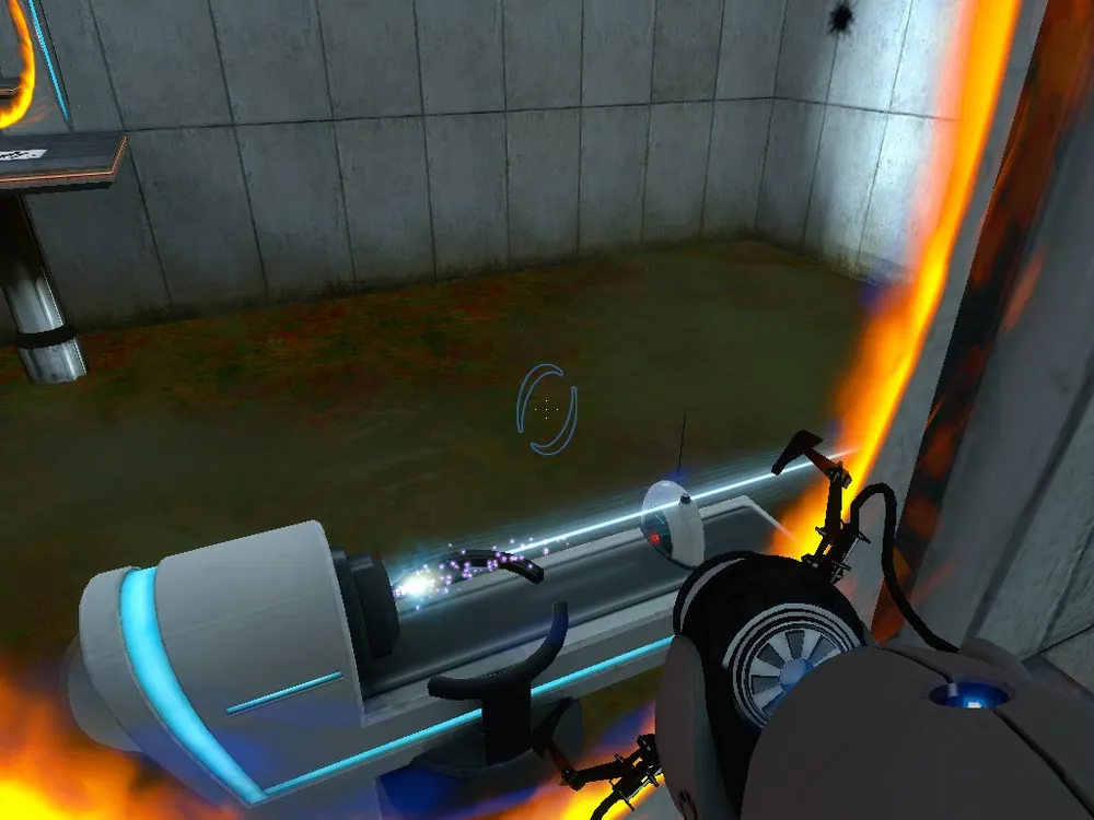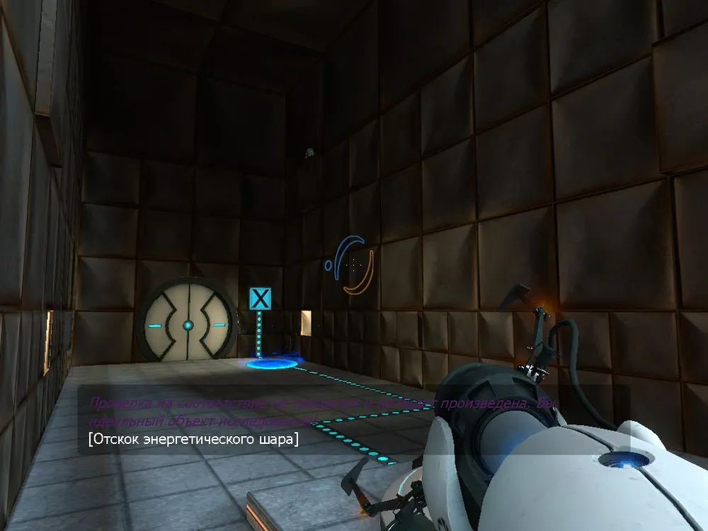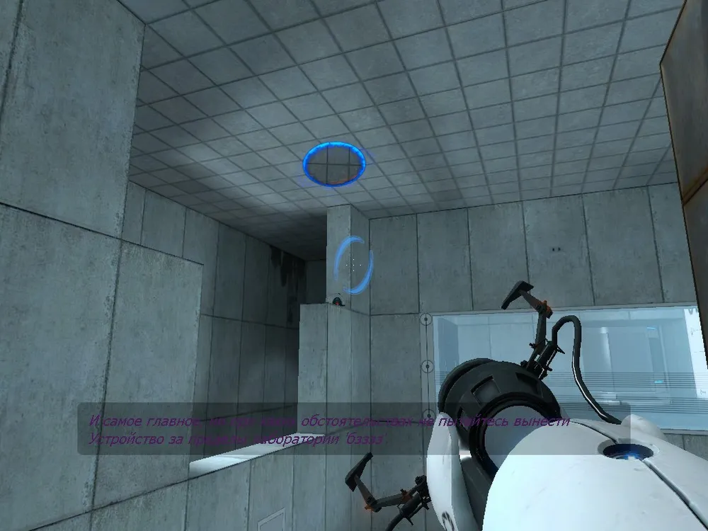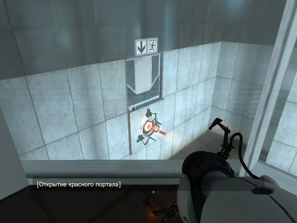 Но если просто войти в камеру, то дверь закроется и попасть назад будет невозможно. Необходимо создать портал под радио, а затем перенести приемник в яму, в которой лежал 1 куб.