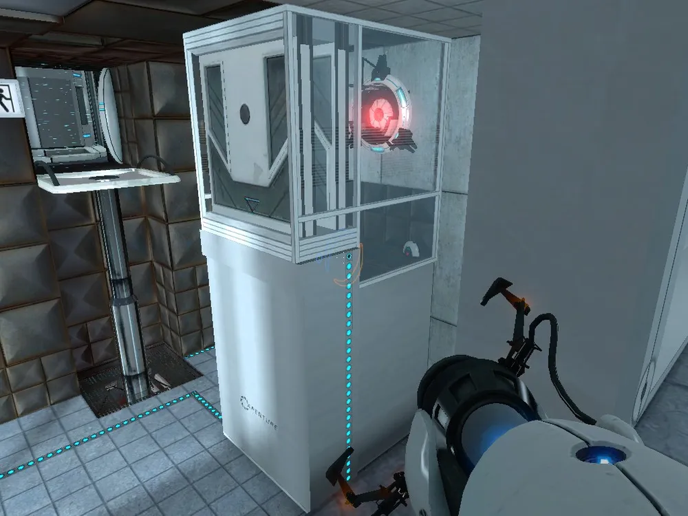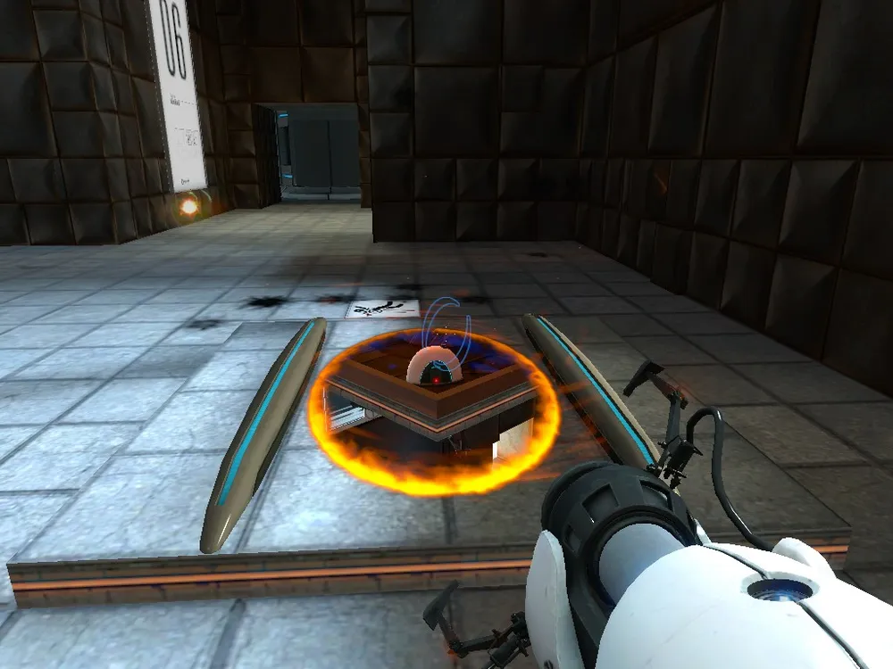 Достается приемник достаточно просто. После открытия 2 дверей в комнате создайте 1 портал прямо под дверями, ведущими в камеру с радио, а второй портал на полу рядом с тем местом, откуда вы будете спрыгивать. Таким образом можно запрыгнуть в камеру. Несите радио к выходу.