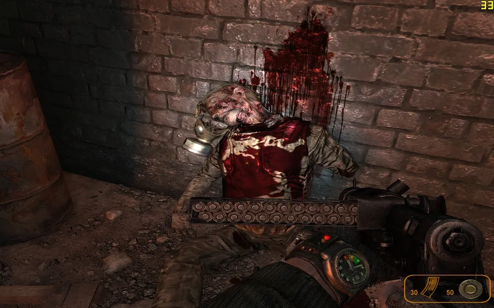 Но раз против человека сражаться не интересно, то схватки с монстрами тут выглядят более- менее. Начинается все с того, что они рычат или пищат, и ты водишь из стороны в сторону свое оружие с включенным фонариком. Везде мрак, и почти нечего не видно, а ты ещё и забыл подзарядить свой фонарик, он погас, и ты тут же достав генератор начинаешь его заряжать на ходу, нервно кликая мышкой, а монстры то близко…. И как по заказу, как только ты включаешь фонарик монстры появляются десятками и пытаются сожрать твою милую, сочную тушку. Отбиваться от них становится каждый раз сложнее, перезаряжаться не всегда успеваешь, патроны кончаются, и иногда приходится «стрелять деньгами» (в мире метро 2033 вместо денег используют патроны 45 калибра).