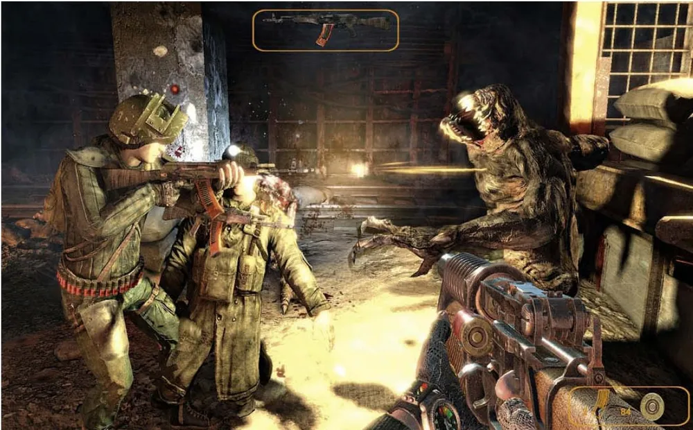 Кстати о точной руке: Метро 2033 предлагает всё, что жаждет сердце консервативного стрелка - от различных пистолетов, самодельных бомб, обрезов или двуствольных ружей, вплоть до знаменитого автомата Калашникова; фантастического оружия вы не найдёте. Как в и романе особенные патроны из довоенных времен служат платой за боеприпасы и более лучшее оружие. Гвоздь программы: некоторое оружие можно, по желанию, заряжать мощной "валютой", что расширяет тактический момент игры. Стреляю ли я стандартными, но слабыми пулями или я лучше действую наверняка, расстреливая при этом, однако, свои деньги?