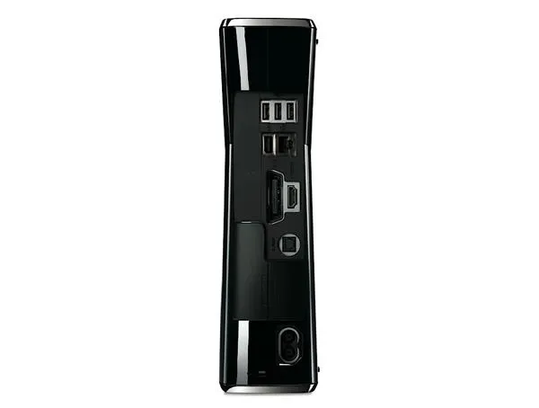 - Новинка снабжена пятью портами USB, разъёмами HDMI, S/PDIF, A/V и Ethernet, а также новым портом для подключения периферийных устройств (см. фото в самом низу заметки). По заверению Microsoft, теперь Xbox 360 работает почти бесшумно. Процессор и видеоускоритель, установленные в консоль, произведены в рамках 45-нанометрового техпроцесса.