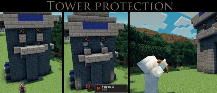 Чтобы уничтожить башню нужно 2 игрока. Один игрок становится на плиту рядом с башней, таким образом делая башни уязвимыми для атак. Осторожно! Башни отравляют игроков вокруг башни. Рекомендуется покупать зелья и заколдованные доспехи.