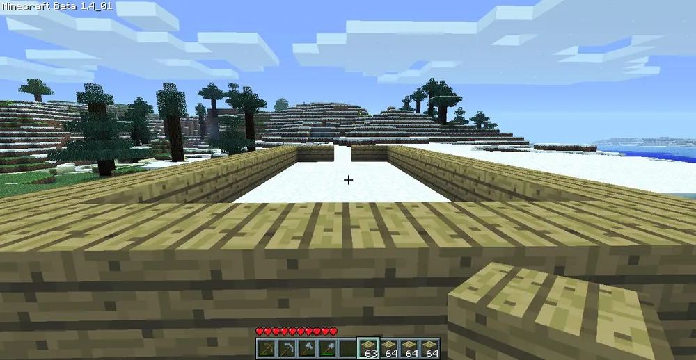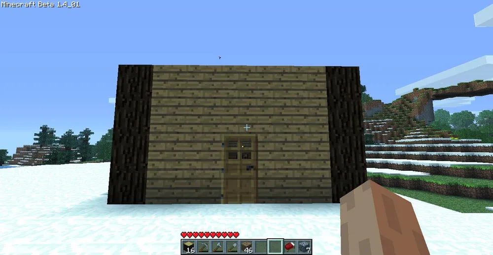 Как только в вашем инвентаре окажется достаточно ресурсов (автор этих строк только что срубил примерно 78 кубиков деревьев, и ему этого хватило с лихвой для первого этажа), чтобы построить небольшой, но уютный домик - выбирайте место и творите.