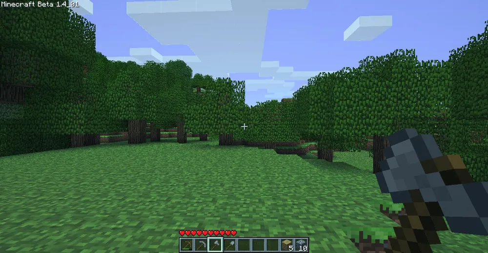 Ну а теперь, пора приступать к изучению нового, неизведанного мира. Самое первое, что надо будет сделать - срубить дерево рукой. И подобрать собственно дерево. После этого мы заходим в инвентарь (по дефолту "E"), там выбираем дерево и кладём в один из четырёх квадратиков "crafting". Дерево (или брёвна), по сути, является основным ресурсом в игре. Но прежде чем идти рубить деревья дальше, мы сделаем инструмент. В этом нам поможет верстак. Также не забудьте подобрать выпавшие из листвы семена, сами деревья в игре не растут, их игроку приходится сажать ручками.