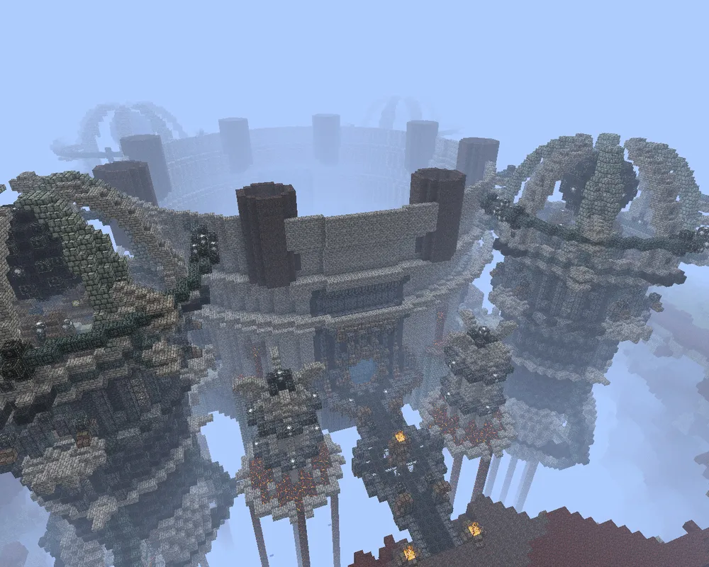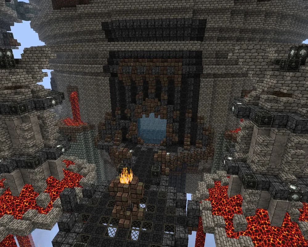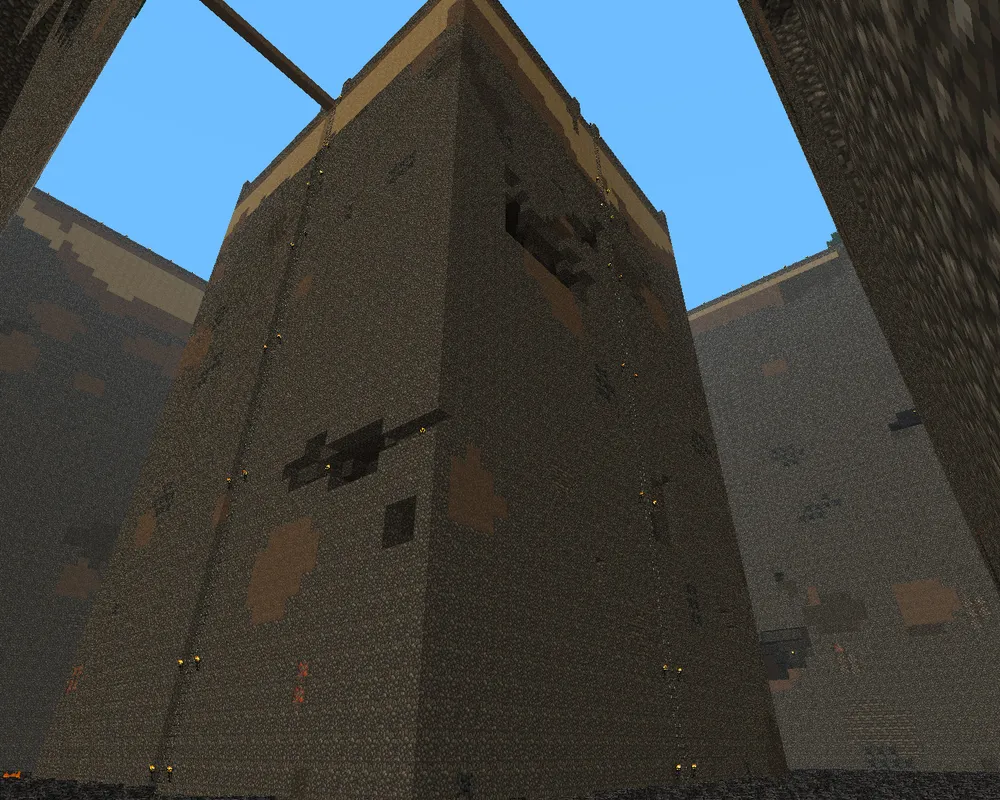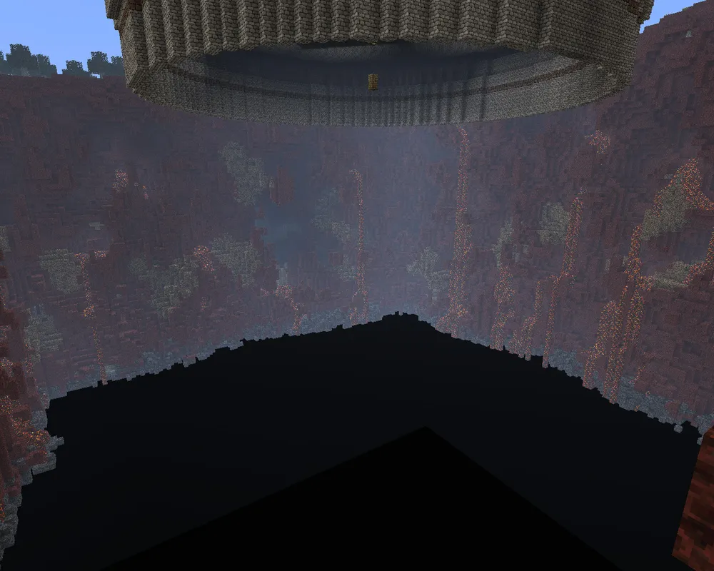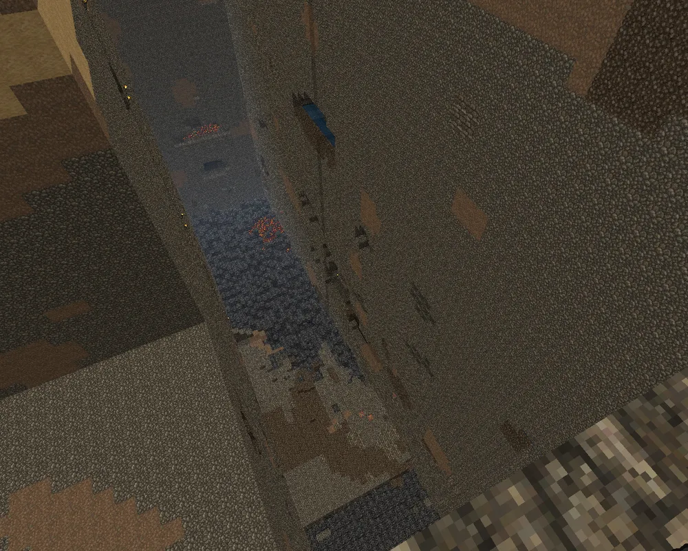 - Полностью выпелен весь пласт породы и зарандомлены стены обрыва (идет микс адского камня и песка души + лава)