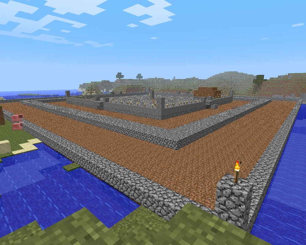 75x75 площадка, огромный обрыв до коренной породы, квадратная основа и много-много задрочинга. Тогда была 1.3 бетка, особо не разгуляешься, так что, рыл как бульдозер, и скринил весь процесс от начала и до конца.