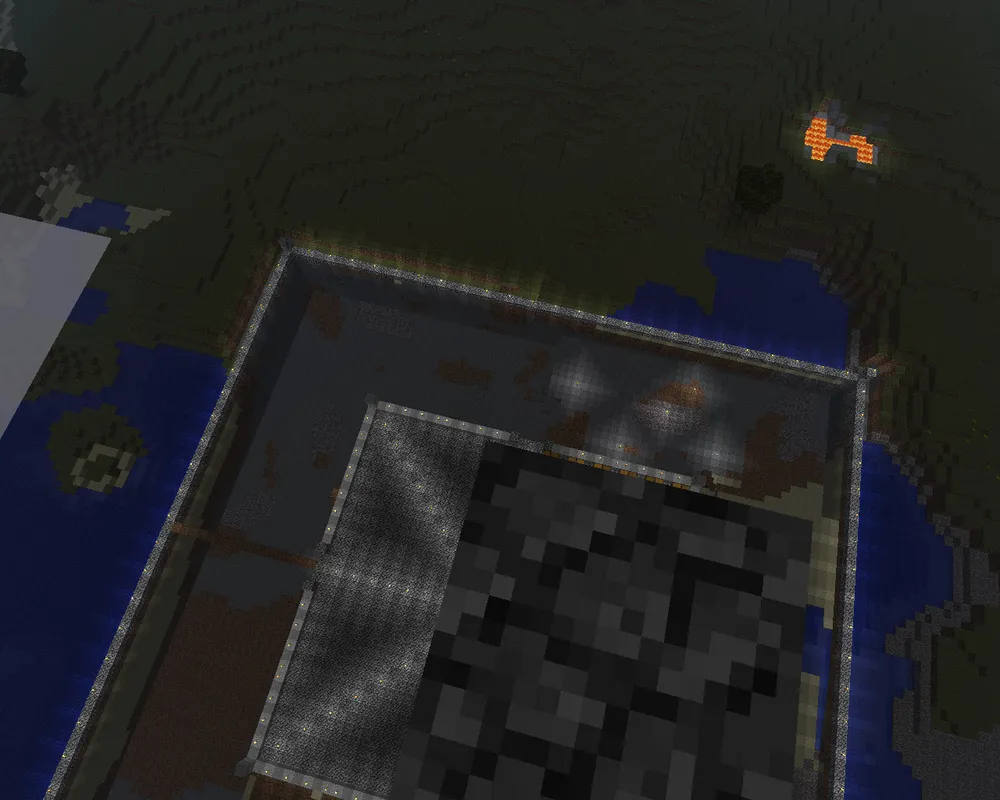 - Так же выпелена частично коренная порода. В этом пункте есть ряд неясностей, ибо один советуют оставить ее и залить лавой (а то когда стекает лава в пустоту это как-то не оч. по их словам), другие напротив советуют оставить пустоту, ибо это выглядет весьма эпично. А что думаете вы?