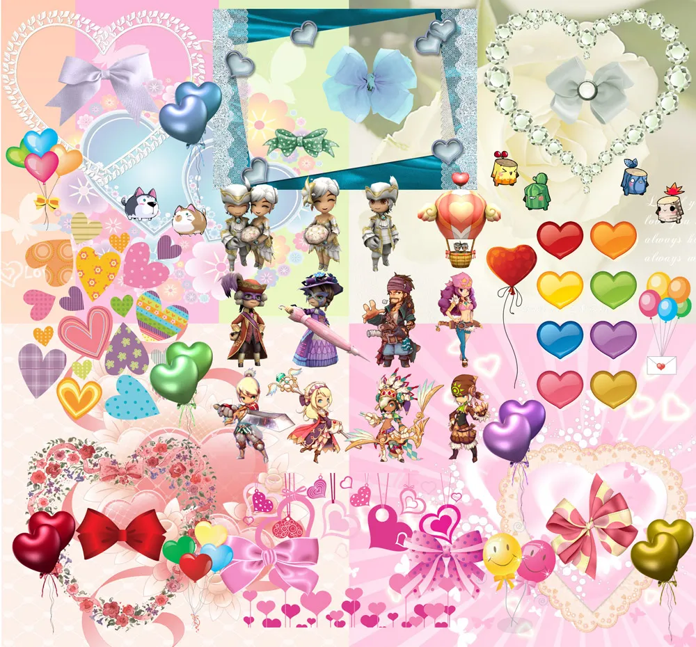 Чтобы облегчить вам жизнь, я собрала специальный набор картинок (51 изображение без фона), включающий все самое необходимое для создания трогательного признания ^^