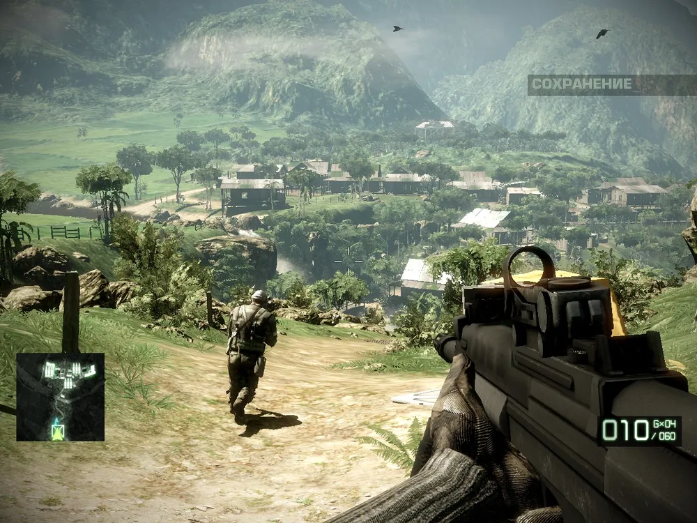 Режим одиночной игры в Battlefield: Bad Company 2 не что иное, как пародия на успешные, я бы даже сказал, гениальные кампании в Modern Warfare 1/2. Сюжет банален до ужаса, но в нём всё-таки что-то есть. Всё как по учебнику. Популярный нынче откат в прошлое, и последующее наблюдение тех явлений в прошлом, собственно уже в будущем. Если быть точным, то, по мнению разработчиков игры, во время ВМВ в Японии было создано некое супер оружие, которое способно вывести из строя всю электрику, и судя по всему, и людей заодно. Но как обычно, никто о нём не знает, а если и знает, то только узкий круг лиц, и, разумеется, злодеи. А точнее как уже принято делать в буржуйских играх – всесильные злобные Русские, говорящие на ломаном Английском, с медведями и водкой под рукой. Которые, разумеется, захватили Европу, Африку, и Южную Америку. (Всё это показывают во время загрузки) Но как до США доходят, то бравые морпехи всех убивают, и обламывают нам (русским) все планы. А вы как думали?